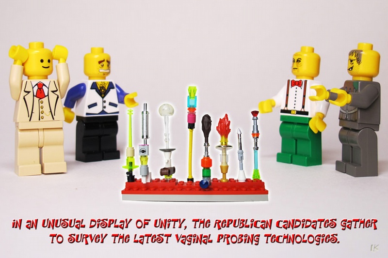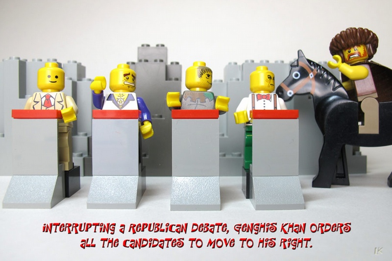 Political scenes from an election are also rendered in a more bizarre and abstract way when using LEGOs.