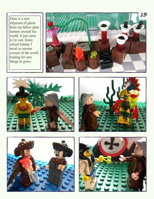 Scratch building with LEGOs (that is, not using a kit) is another way miniaturists can broaden their experiences with the miniature world. Our Harry Potter project (Greenhouse #3) won a prize in a LEGO contest. It is memorialized in a comic book telling the story of Professor Sprout’s work in the greenhouse. The model no longer exists.